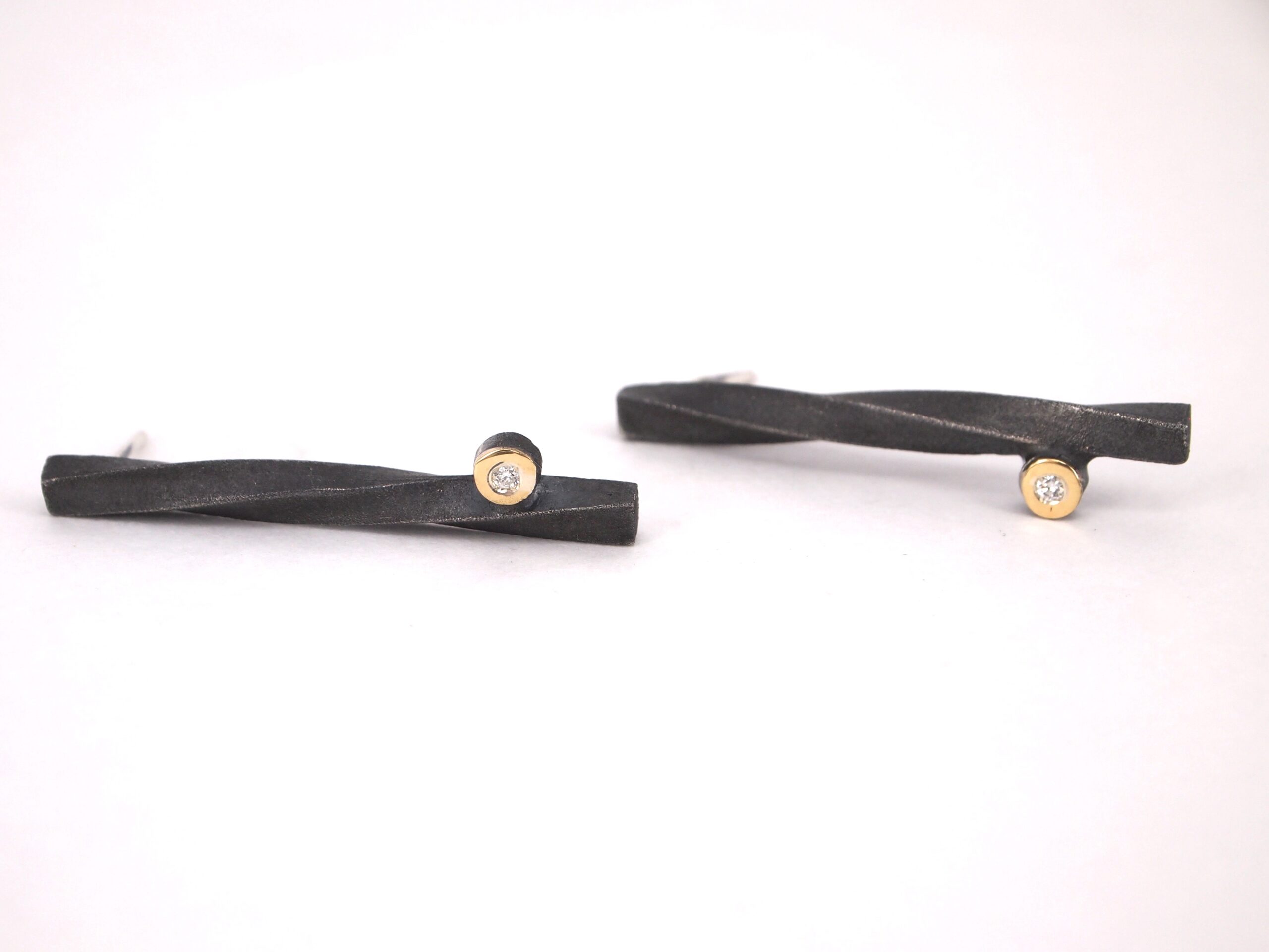 Colección de plata oxidada y oro, diamante en talla brillante de 1,8mm-0,024ct
