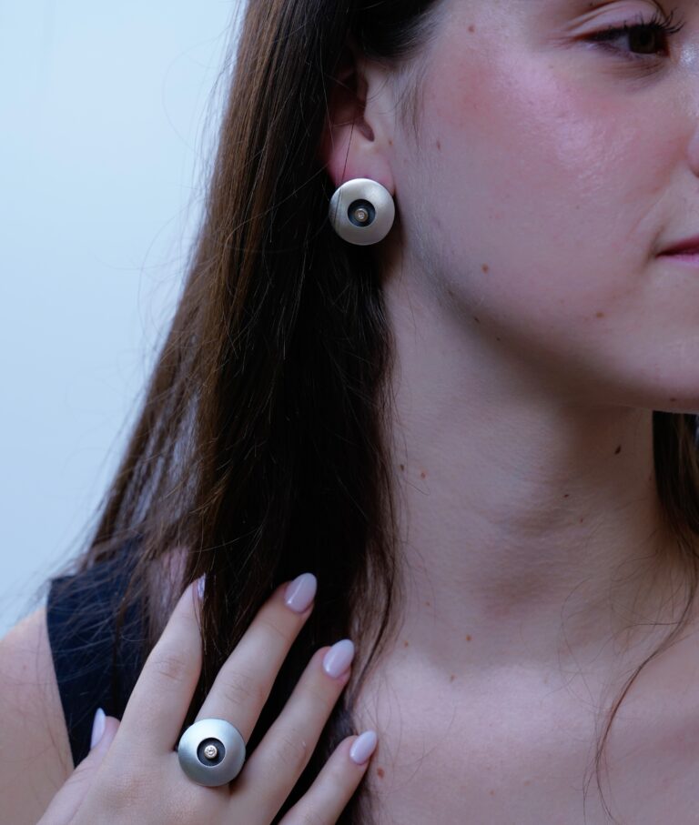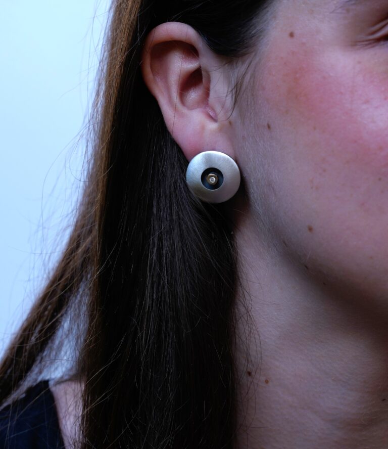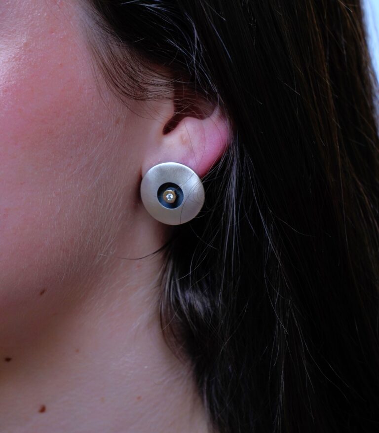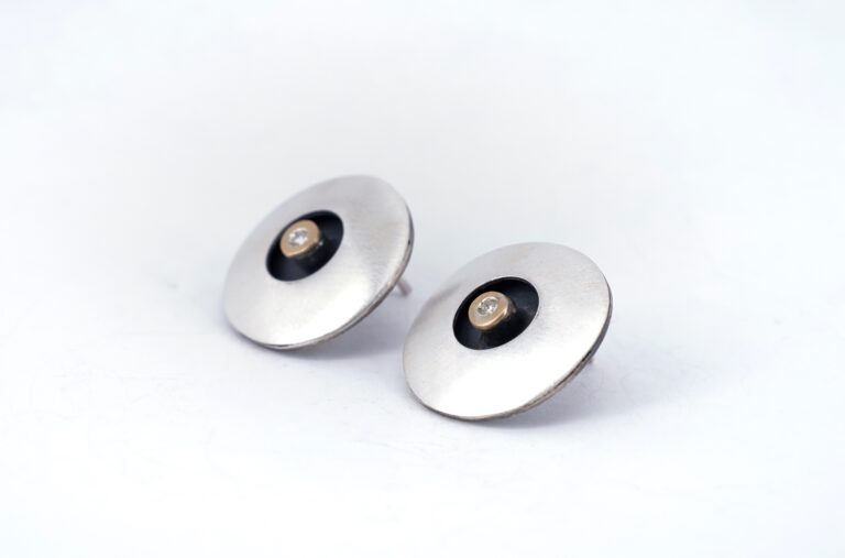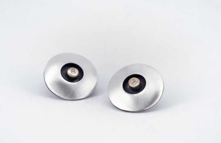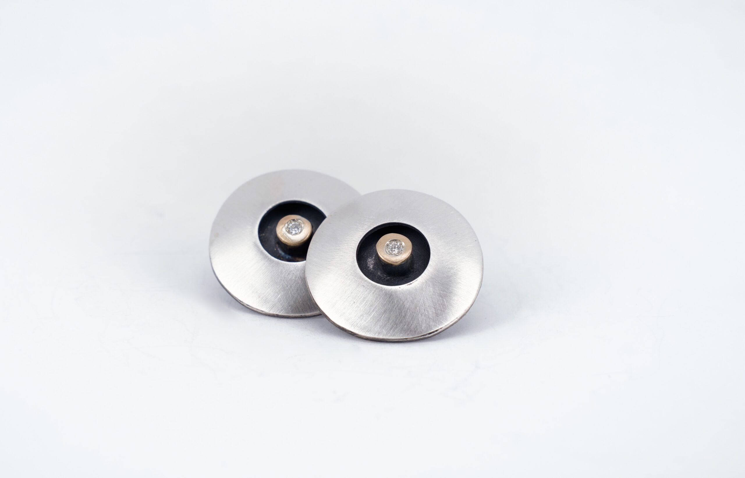 Pendientes de plata mate, oro de 18 K y diamante talla brillante de 0,024 ct.